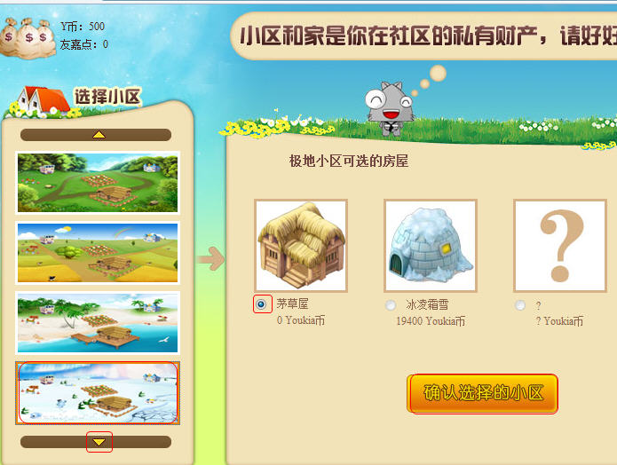 进入社区首先要有一个家,这里我们使用乡下箭头,选择极地小区,当然你也可以选择别的小区,根据你的你自己的喜好而定。